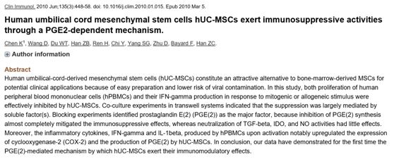 ![]() 汉氏联合研发团队发表的脐带间充质干细胞通过PGE2发挥免疫调节作用的论文