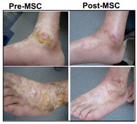 干细胞治疗4周后,患者症状显著改善,足部溃疡基本愈合。 ![]() MSC移植改善系统性硬化患者难治性皮肤溃疡