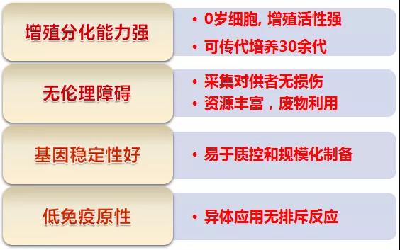 与成体干细胞相比,围产期脐带和胎盘干细胞的优势主要包括如下图: