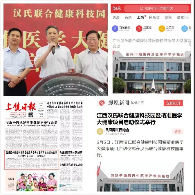 | 汉氏联合成果专栏23:打造干细胞再生医学全产业链闭环2019年6月,汉氏联合健康科技园暨精准再生医学大健康项目在江西上饶正式启动,江西省政协党组副书记、副主席陈俊卿、上饶市委书记马承祖、法国医学科学院院士Georges UZAN、Jean-Pierre CAZENAVE以及南昌大学一附院、福建医科大学等专家学者出席了此次启动仪式。上饶日报、上饶电视台、网易新闻、凤凰新闻等多家媒体对此项目的启动争相报道。 厉害了!上饶各大主流媒体今天都在关注这个项目 这一项目的启动意义重大,至此,汉氏联合在干细胞再生医学领域打造了完整的产业链闭环。 健康科技园囊括了干细胞产业链的上游(江西多能干细胞库)、中游(干细胞产品研发中心,即江西省干细胞工程技术研究中心和江西省细胞产品工程技术研究中心),以及下游(干细胞临床应用,包括第三方检测中心、高端体检中心、医学整形美容中心和研究型三级医院)。