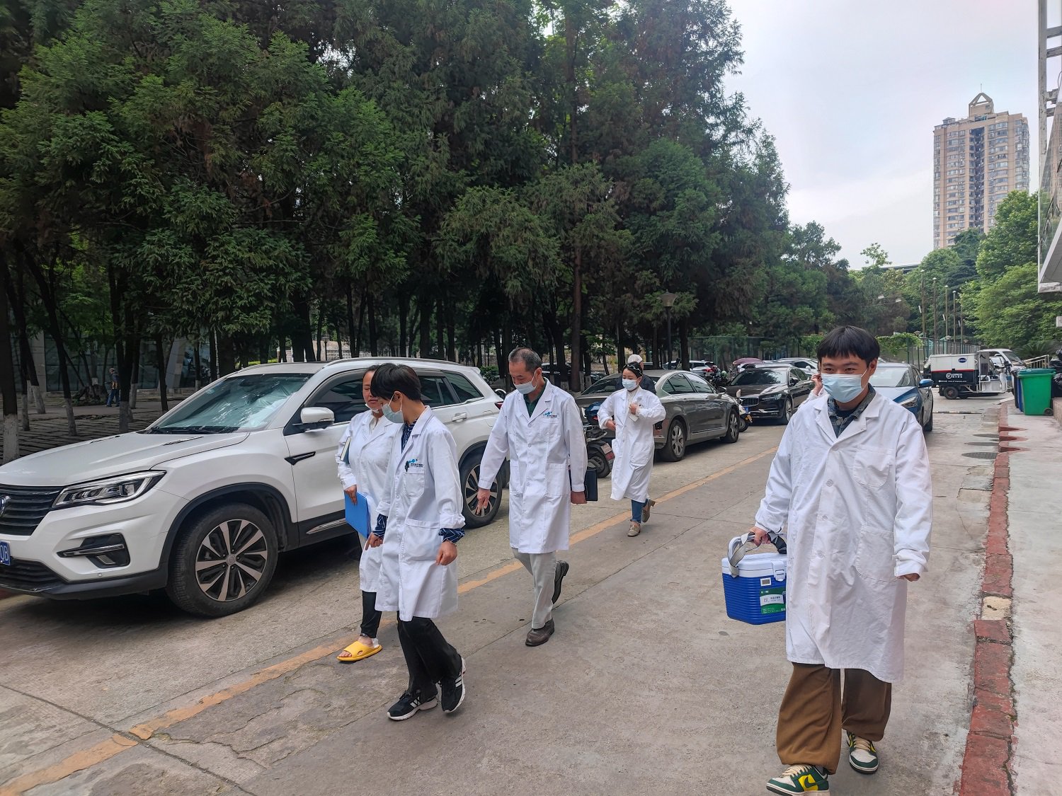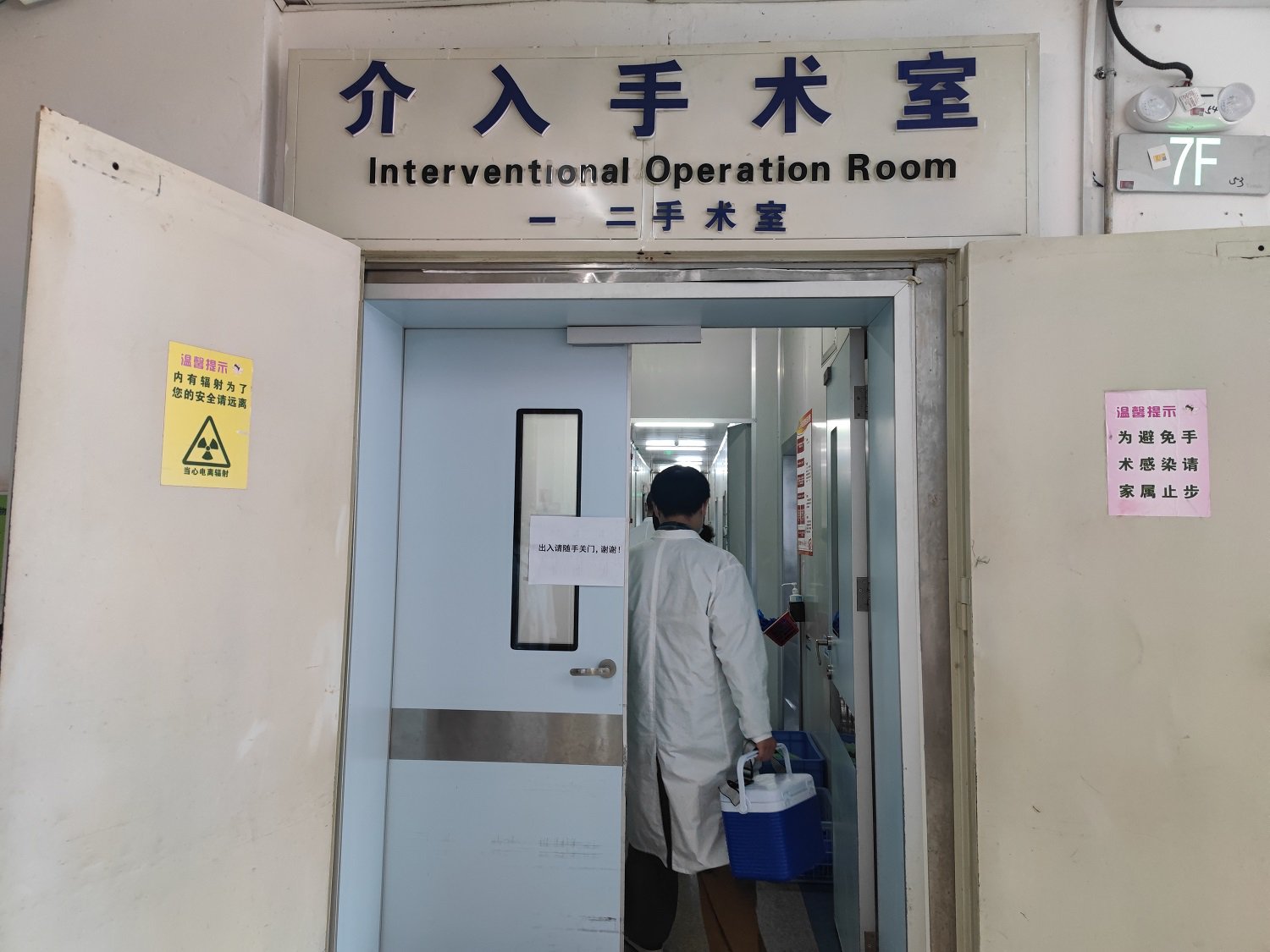 在完成干细胞解冻复苏、稀释等环节后,工作人员取走干细胞进行配送。最后,交接到贵医附院介入手术室,此次演练顺利完成。